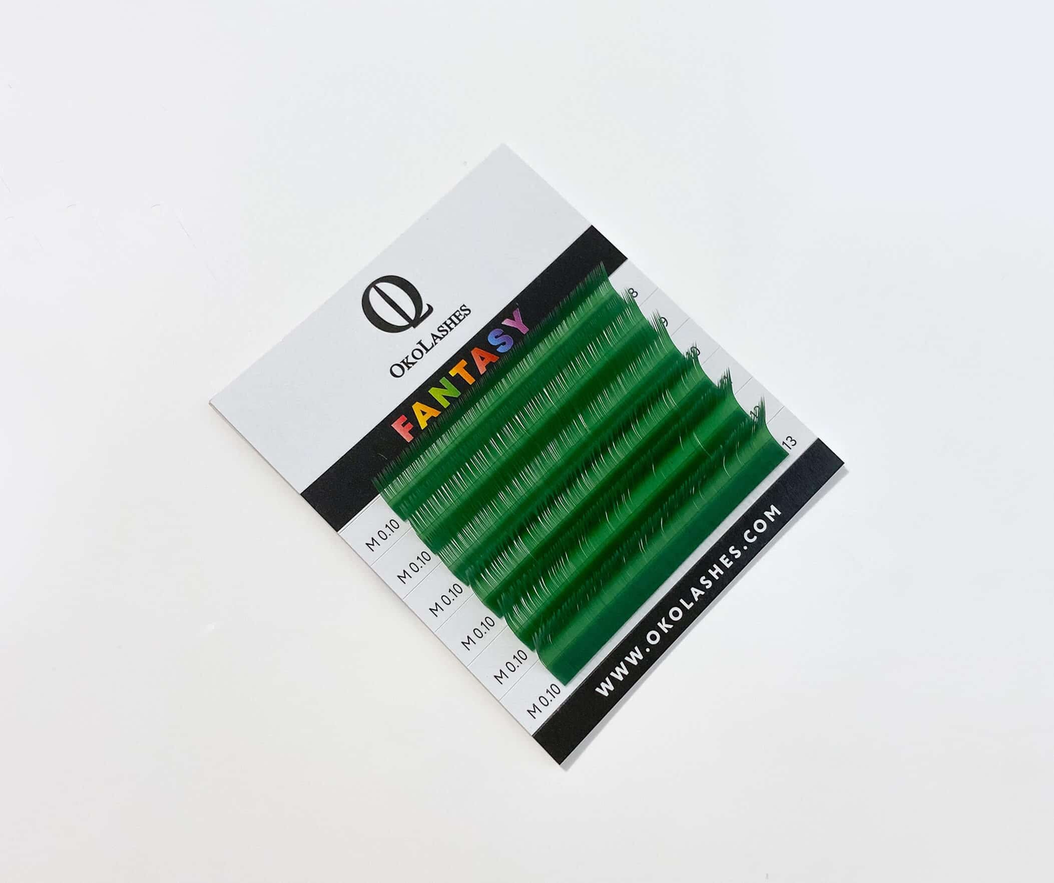 Extensii de gene fir cu fir colorate Fantasy Mix verde – OkoLashes